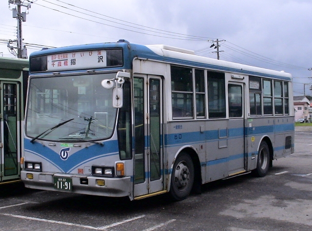 いすゞ P-LT312J(岩手県交通) 全長9mクラスの大型短尺車です。 リヤウインドー周りの凹んだデザインが特徴です。2006年8月18日撮影。