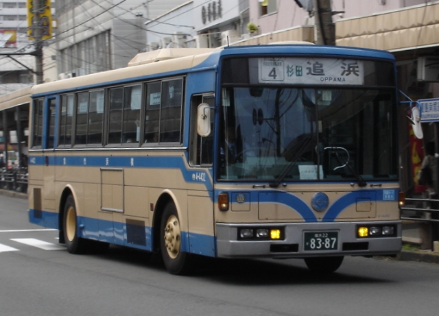 西日本車体工業「96MC」ボディー架装のCNGバスです。本車両は横浜市営バスでは2台のみの導入でした。