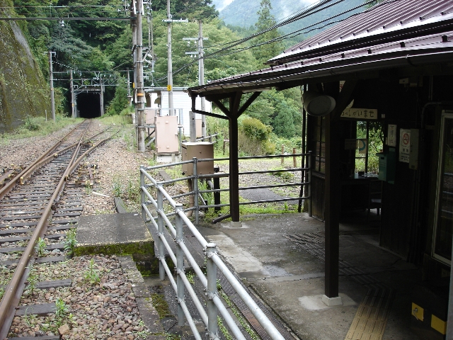 小和田駅です。日本屈指の秘境駅として有名で、周辺は無人地帯となっています。静岡県・愛知県・長野県3県の県境に位置しています。(2014年8月30日撮影)